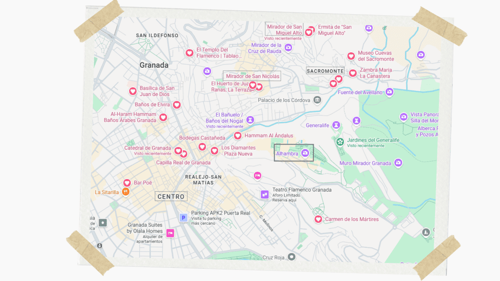 Once you’ve reached the viewpoint, you’ll find the most quintessential Granada postcard view and one of the most famous photo spots in Spain, with the Alhambra framed against the Sierra Nevada.