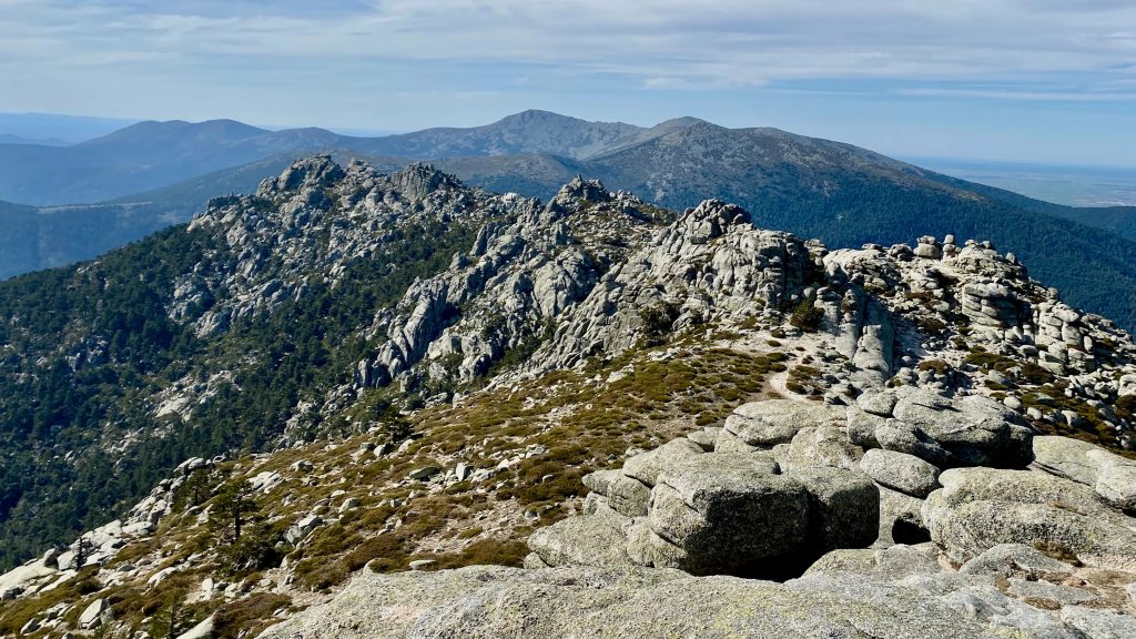 The most iconic hike from Cercedilla is Siete Picos, a classic mountain route that climbs steadily through forest before reaching a series of exposed granite peaks. From the summits, you’re rewarded with wide panoramic views across the Madrid mountains and, on clear days, far beyond.
